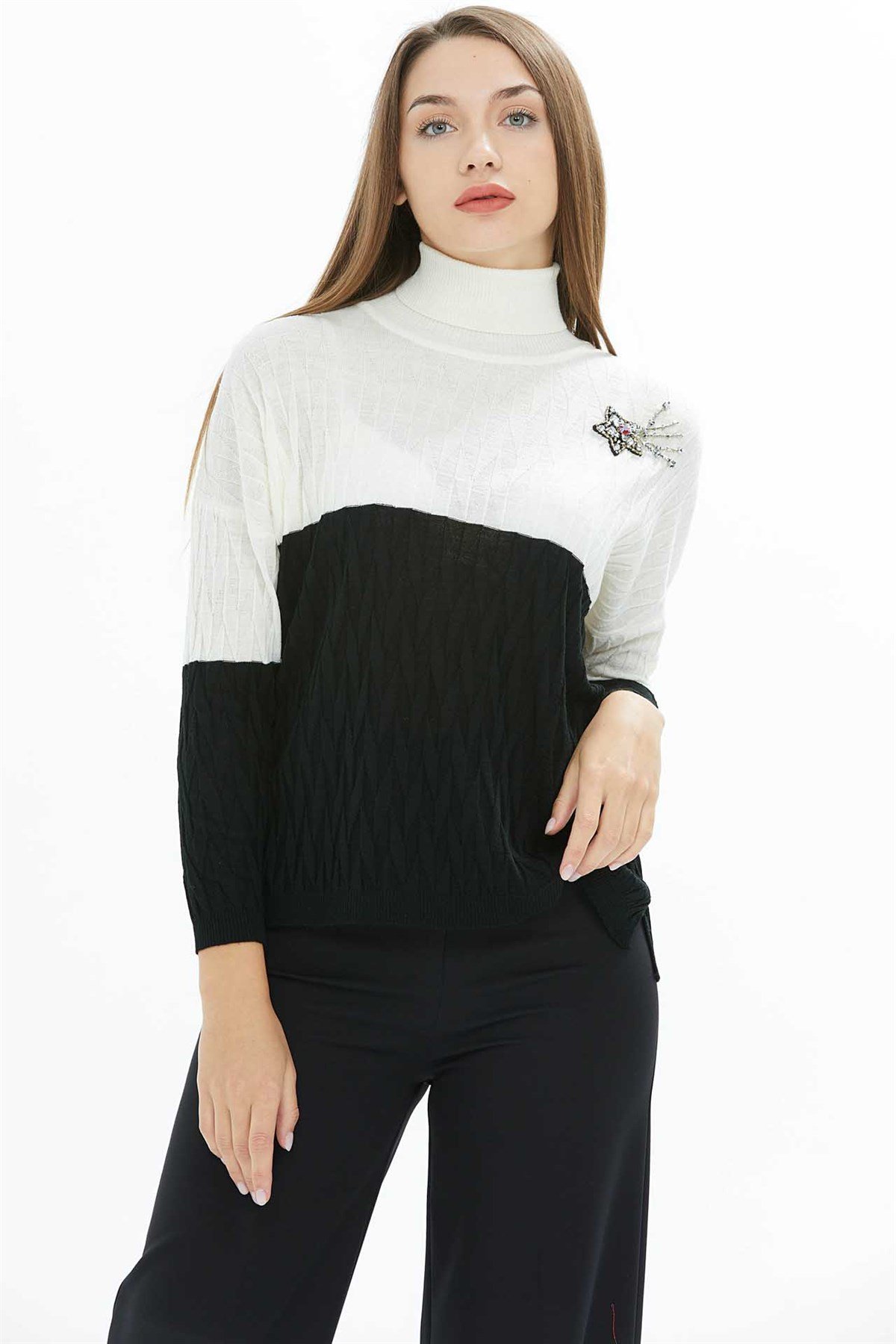 APLİKE DETAYLI TRİKO SİYAH-KEMİK
