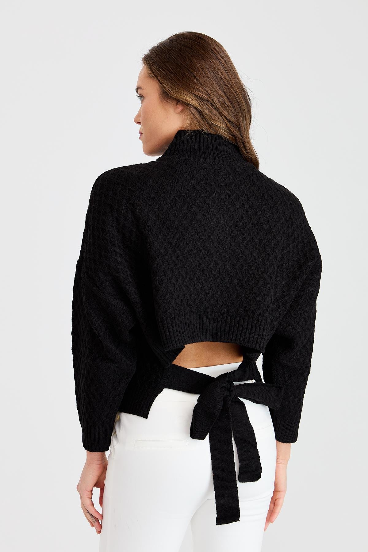 Bel Dekolteli Bluz KEMİK Bel Dekolteli Bluz SİYAH