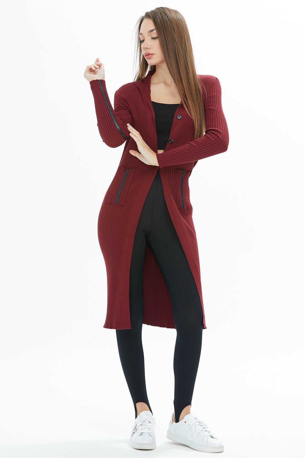 Cep Detaylı Kapişonlu Triko BORDO (MK2250000413)