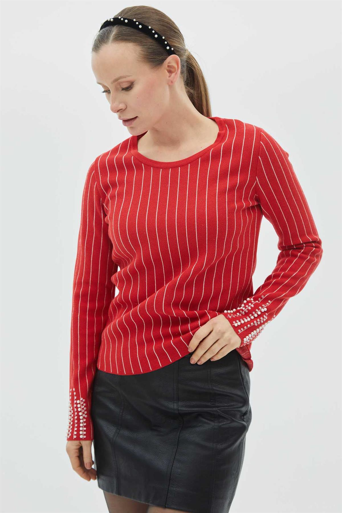 ÇİZGİ DETAYLI BLUZ KIRMIZI