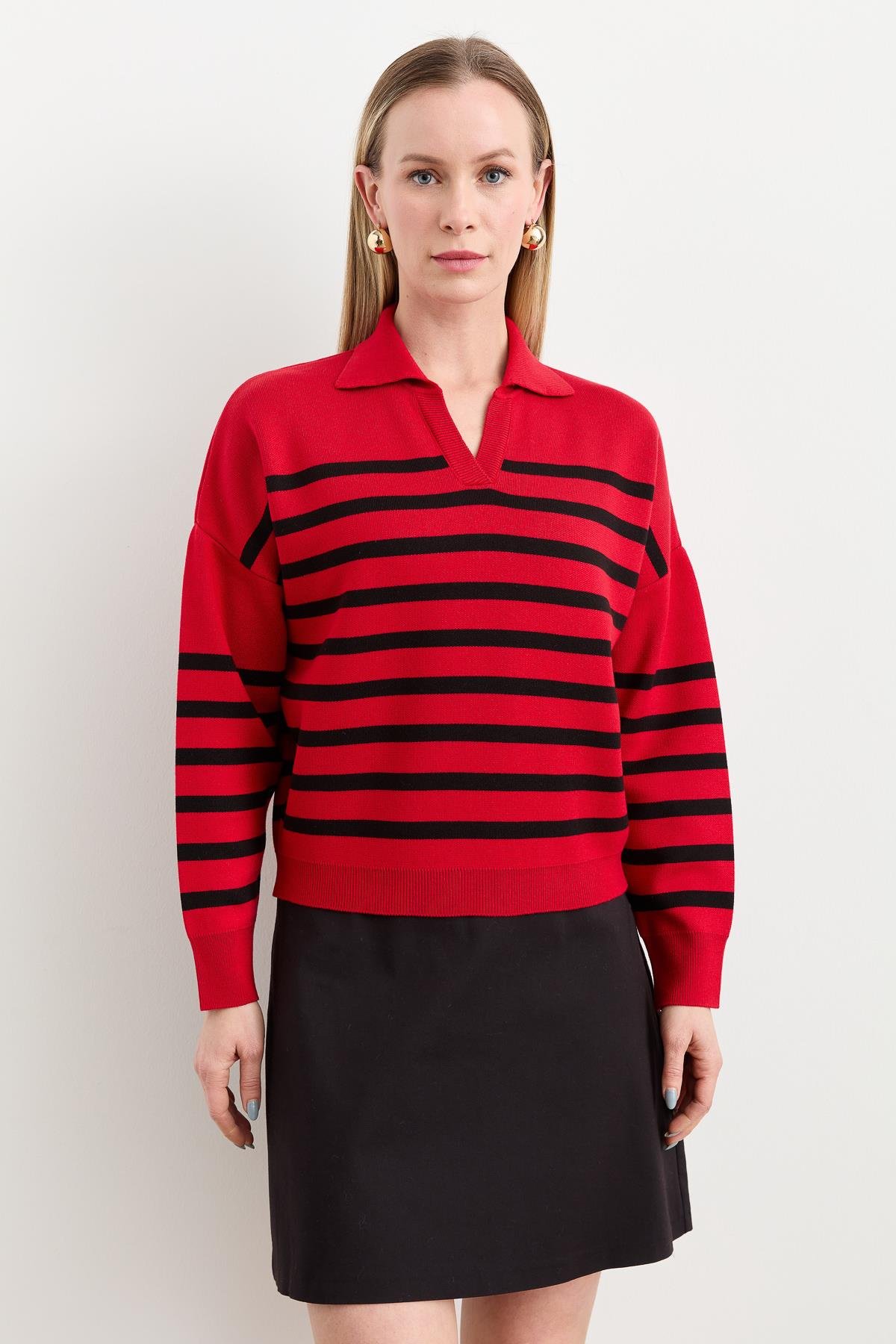 Çizgili Bluz KIRMIZI (K3TBL22244)