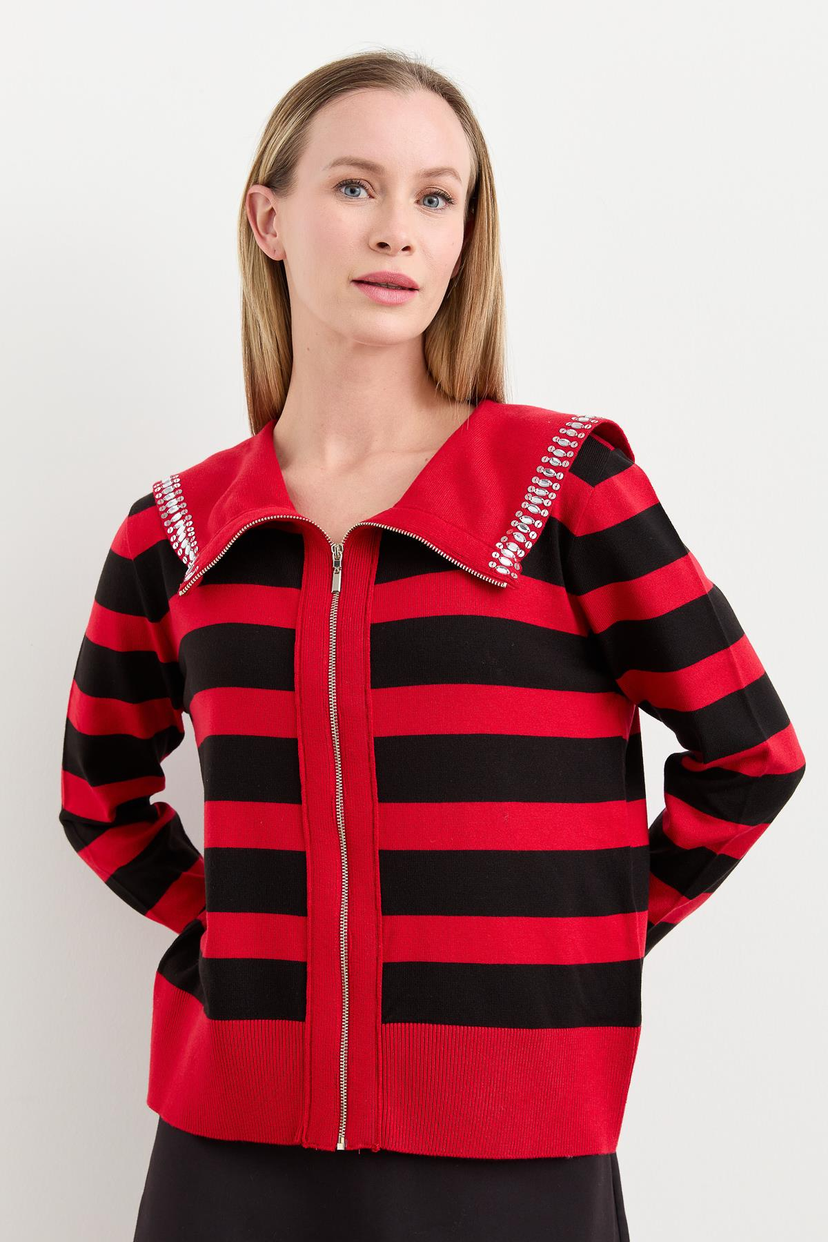 Çizgili Hırka KIRMIZI (K3THI22139)