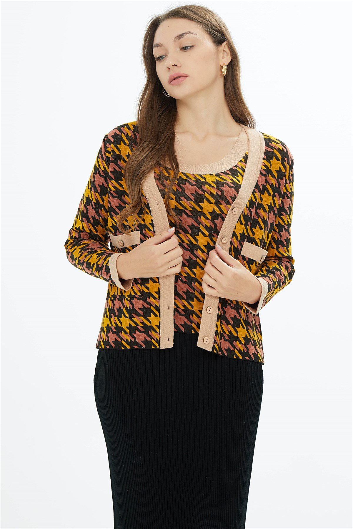 DESENLİ TWİNSET PORTAKAL DESENLİ TWİNSET SİYAH DESENLİ TWİNSET Vizon