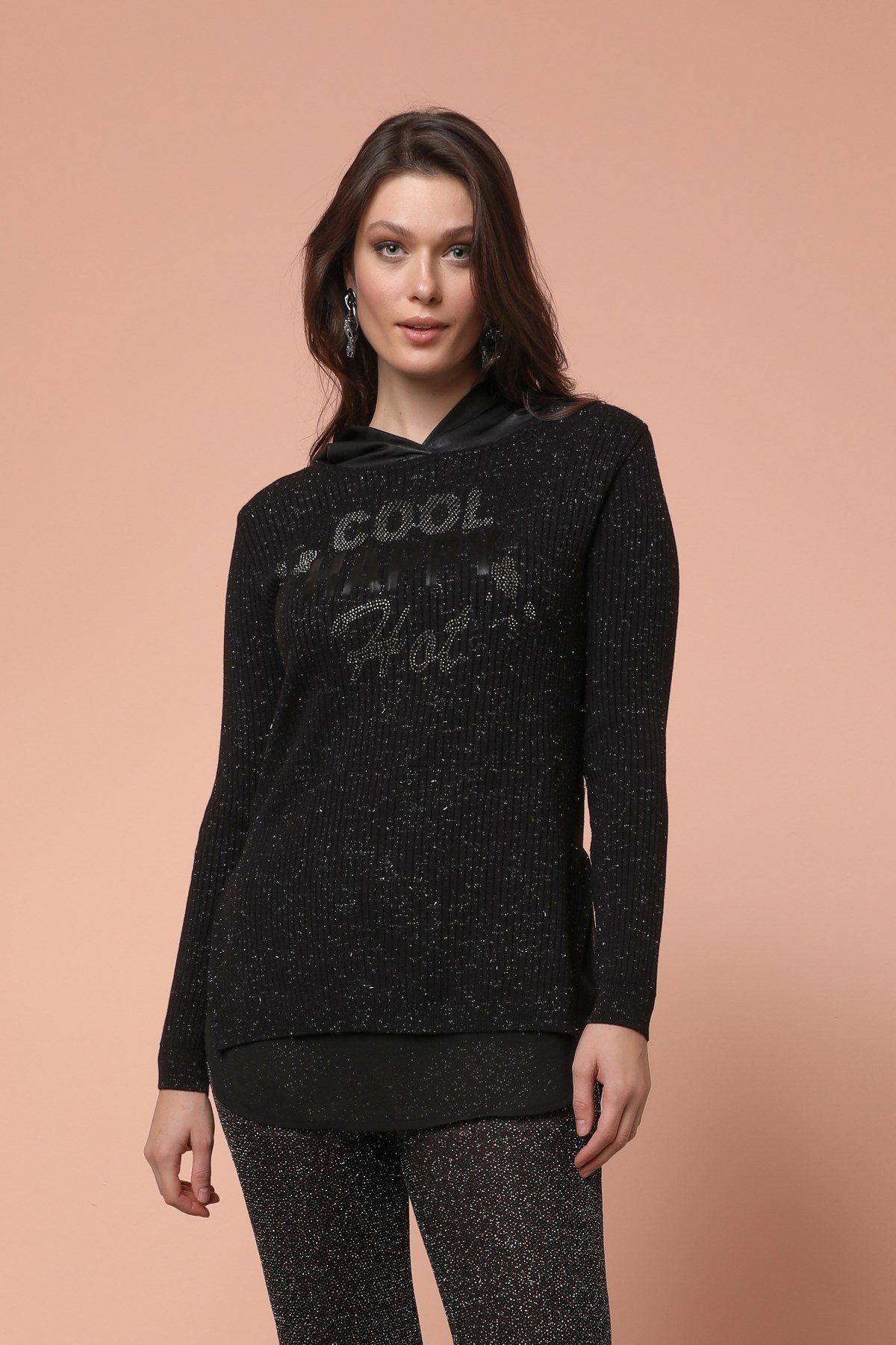 KAPİŞON DETAYLI BLUZ SİYAH (MK2250021387)