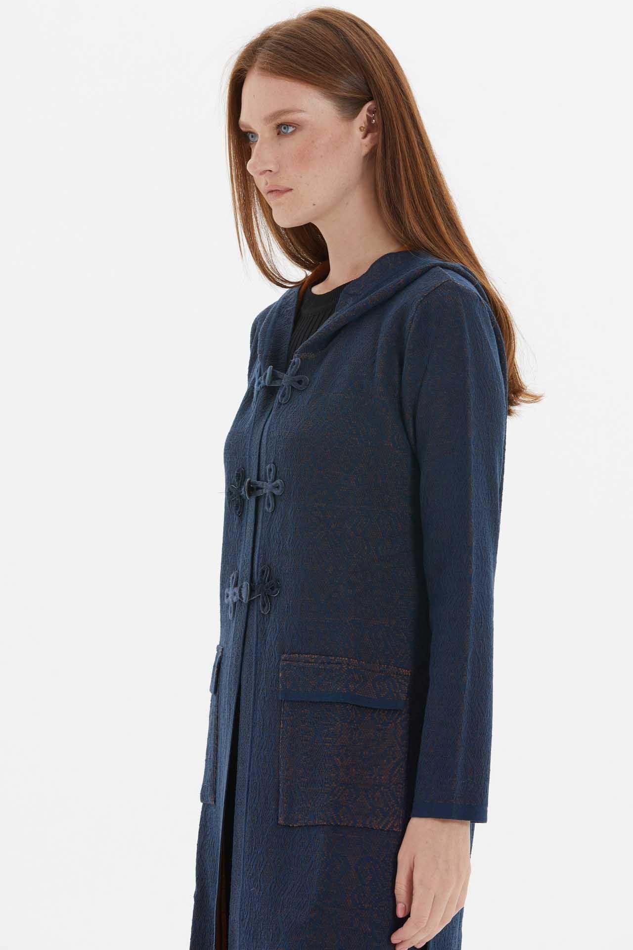 Kapişon Detaylı Uzun Hırka Laci-Bakır
