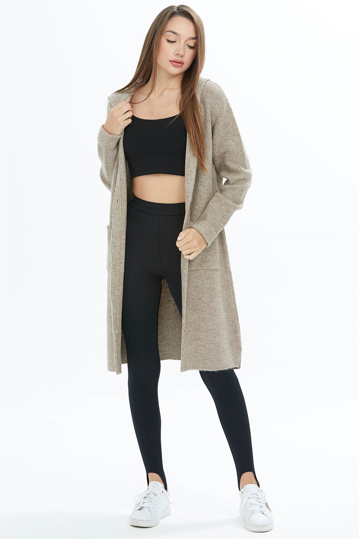 KAPİŞONLU UZUN CEKET Vizon