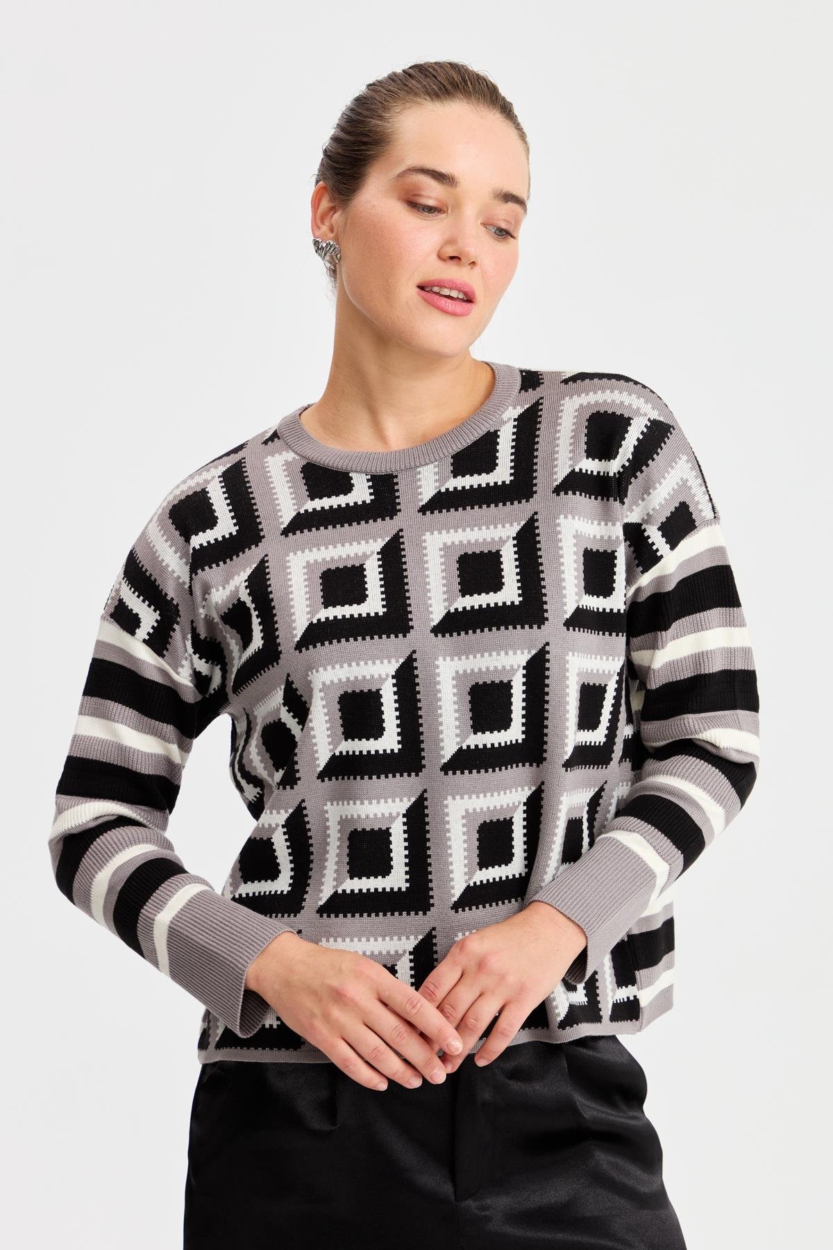 Kare Desenli Bluz GRİ (K3TBL22155)