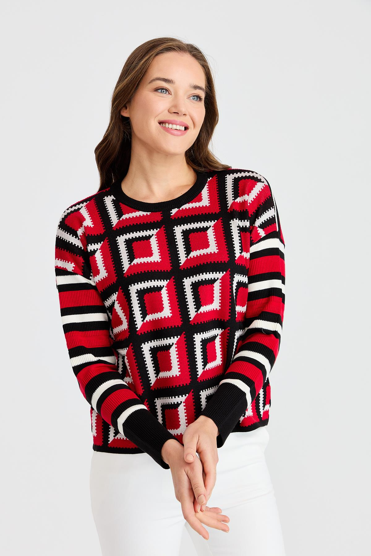 Kare Desenli Bluz SİYAH (K3TBL22155)
