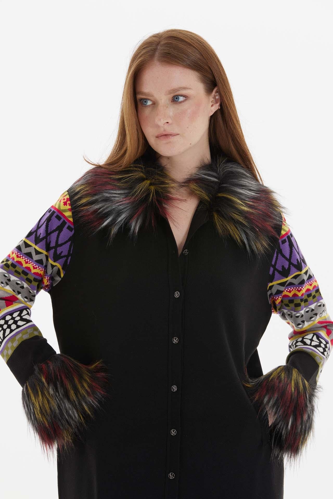 Kürk Detaylı Hırka SİYAH (K3THI22370)