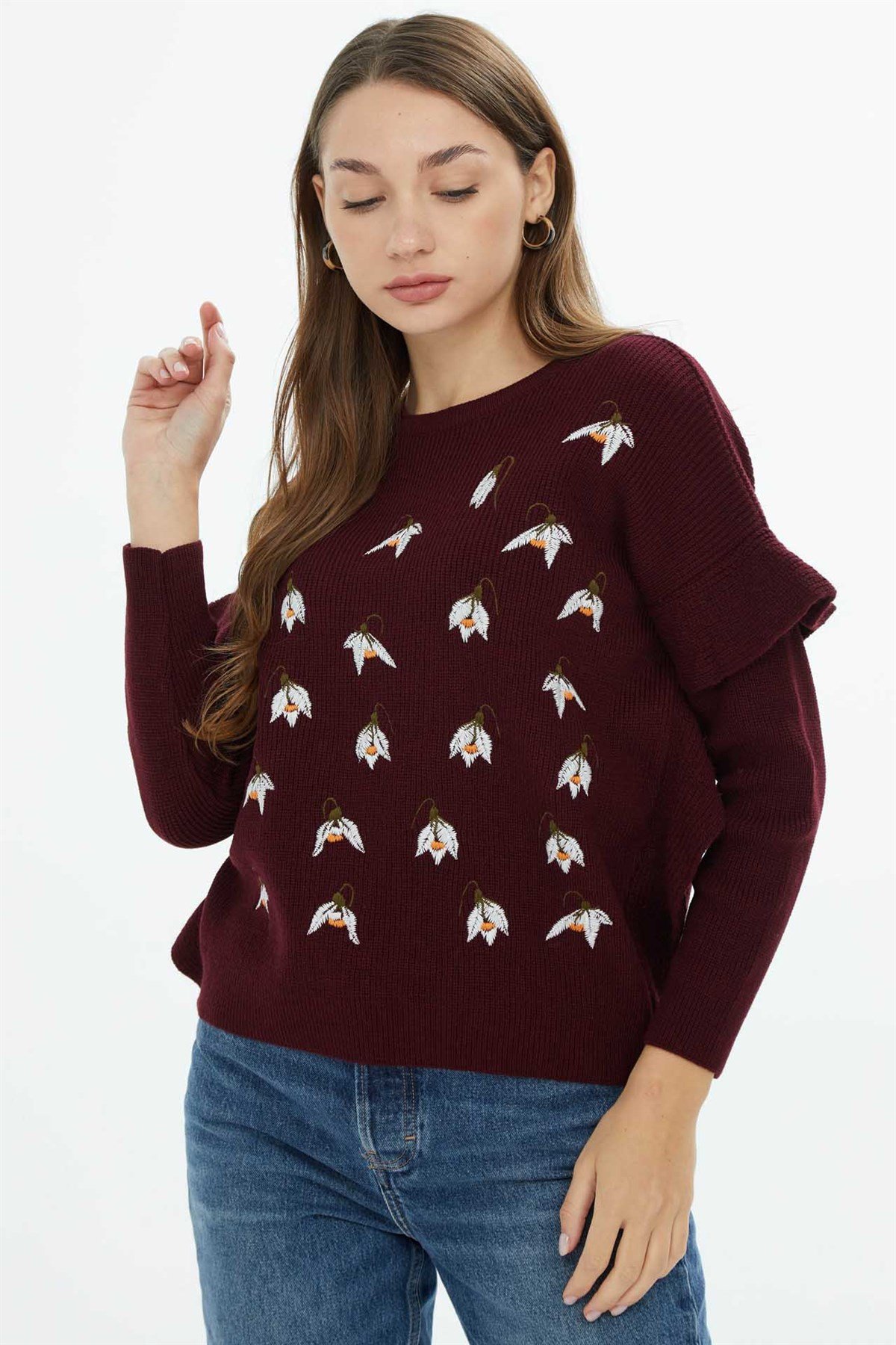 NAKIŞ DETAYLI TRİKO BORDO