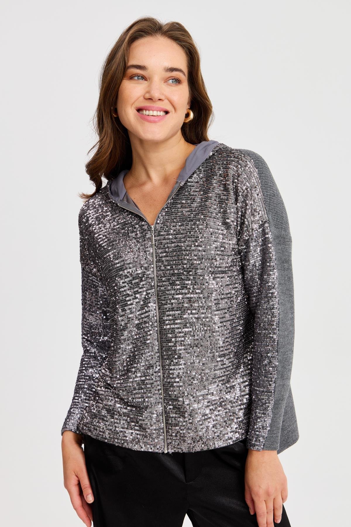 PAYET DETAYLI HIRKA KEMİK PAYET DETAYLI HIRKA Koyu Gri