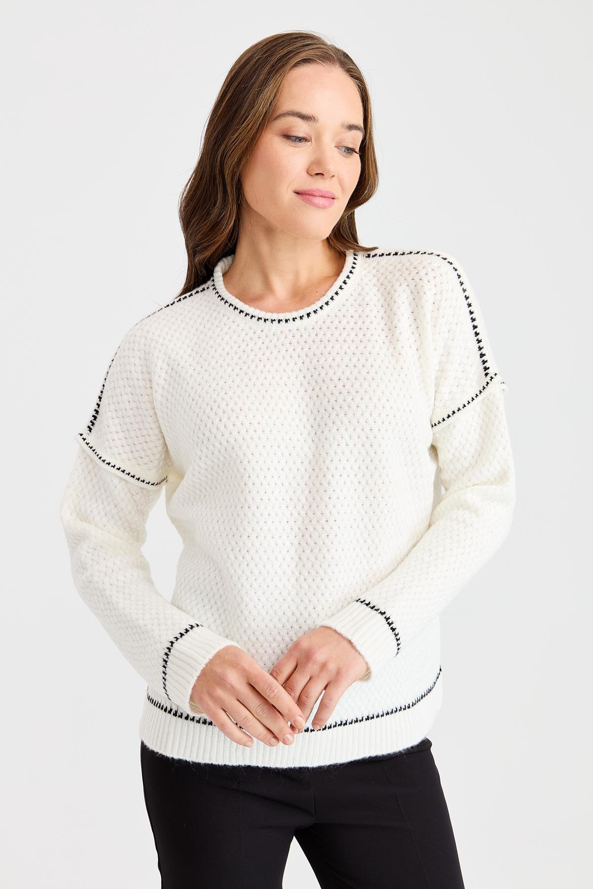 Sıfır Yaka Bluz KEMİK (K3TBL22194)