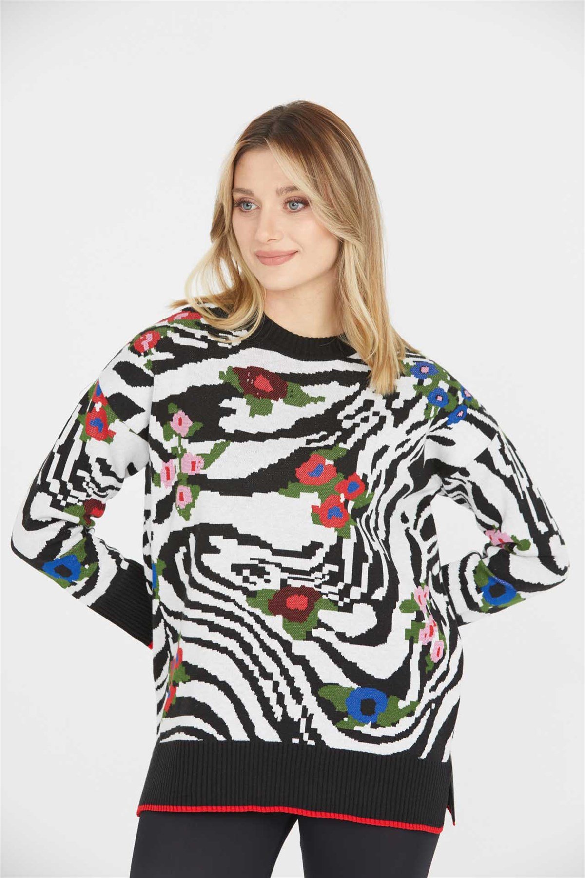 SIFIR YAKA ÇİÇEK DESENLİ BLUZ SİYAH (MK2250022022)