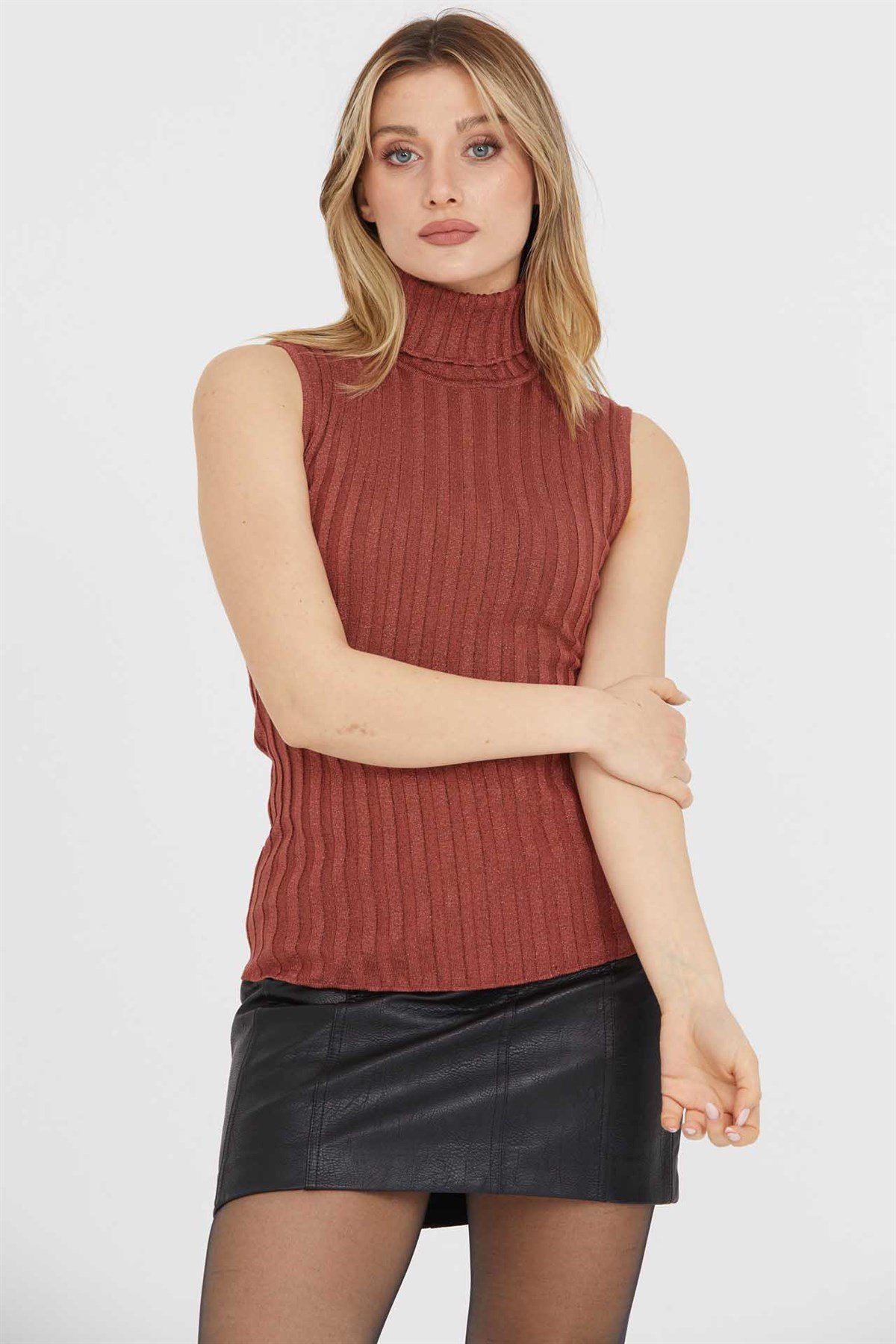 SİM DETAYLI KOLSUZ TRİKO BAKIR
