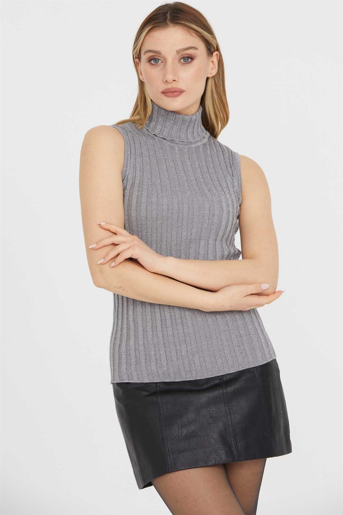 SİM DETAYLI KOLSUZ TRİKO BAKIR SİM DETAYLI KOLSUZ TRİKO GRİ