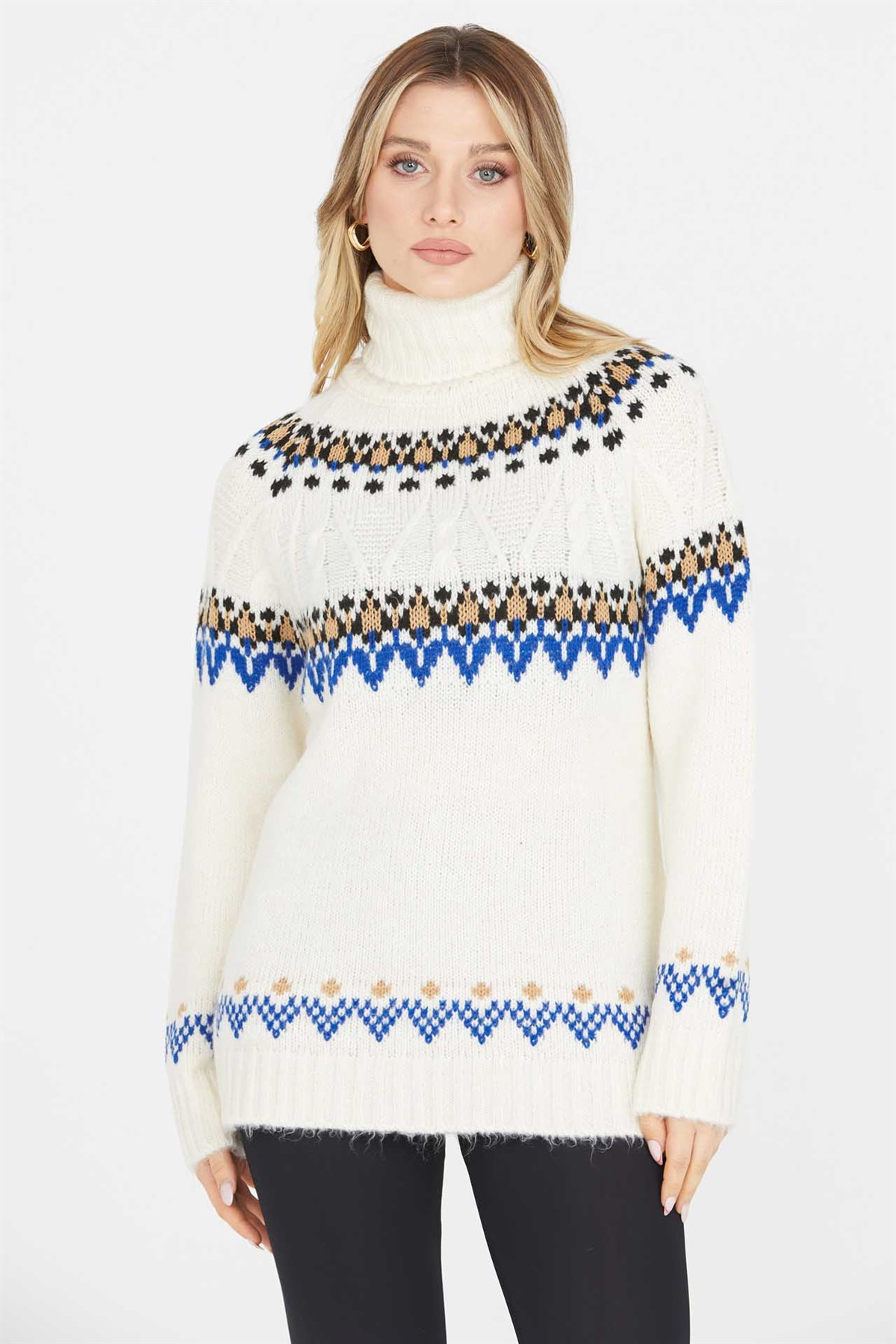 TAM BALIKÇI DESENLİ BLUZ TAŞ (MK2250021999)