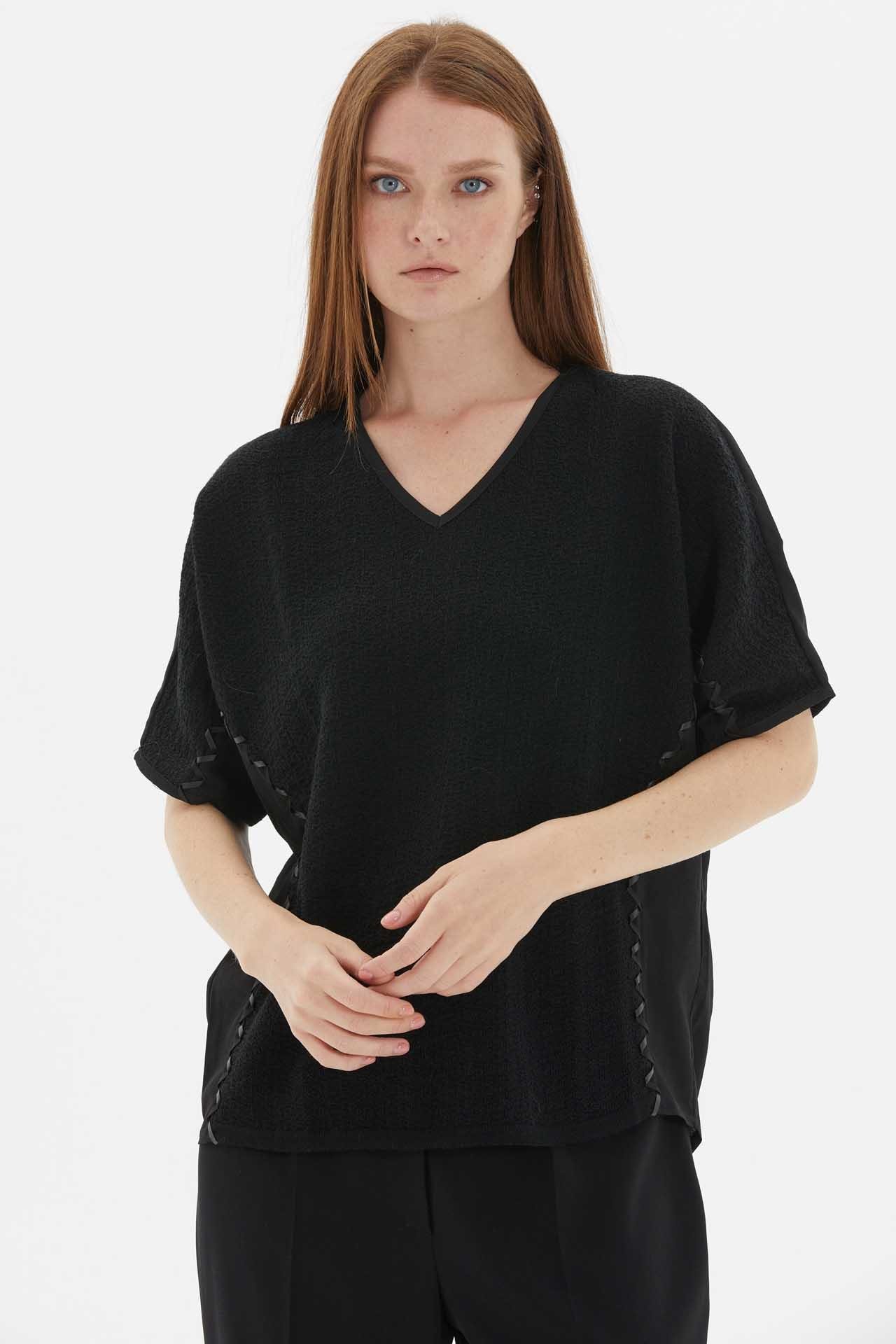 V Yaka Triko Bluz SİYAH (MK2250008189)