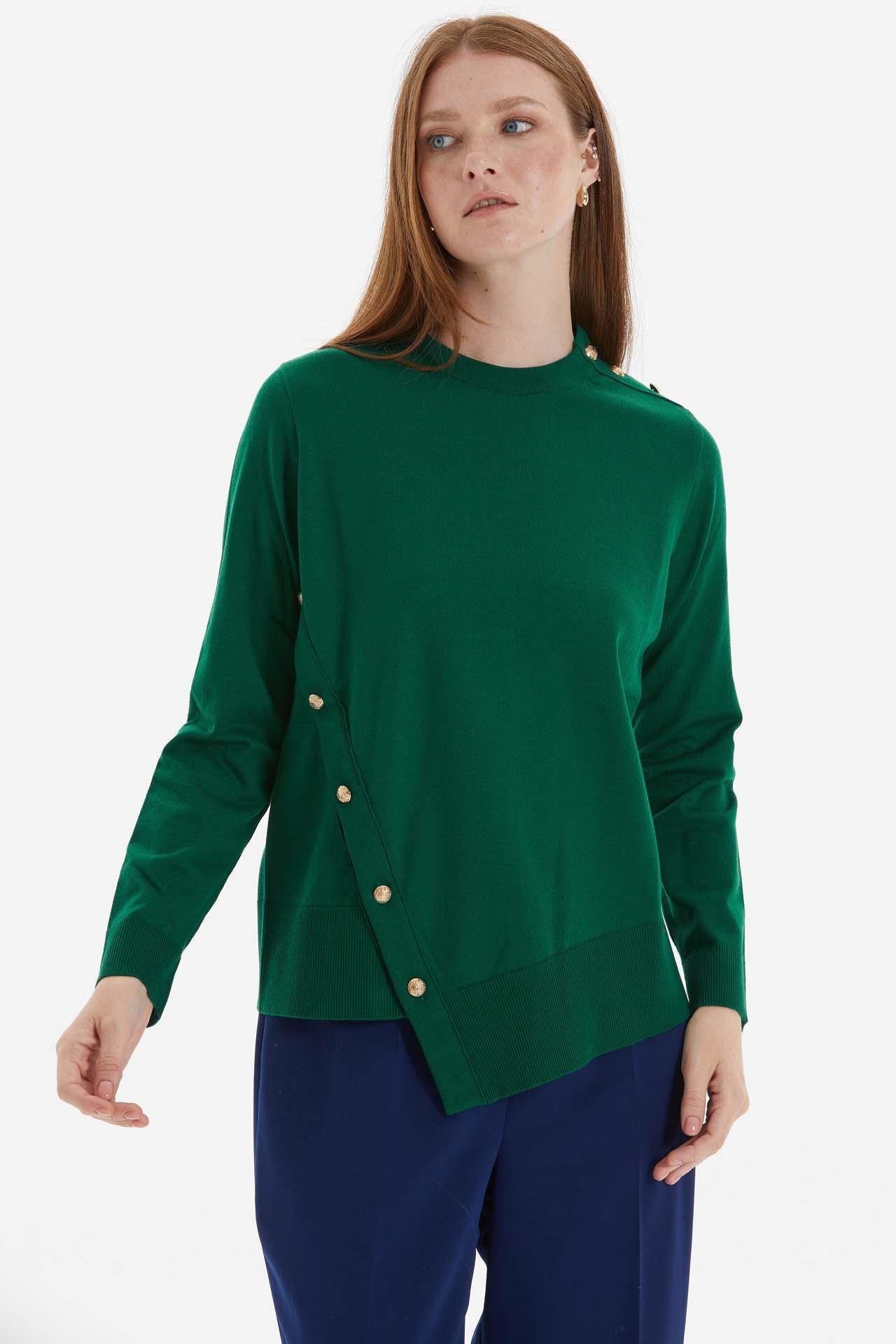 Yan Düğmeli Bluz KOYU YEŞİL (K3TBL22448)
